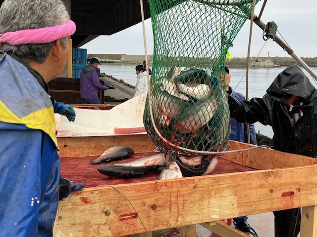 水揚げされたトラウトサーモンは、色つやや、型が昨年より良く、脂のりも良すぎるほど、刺身にしたら最高~とのことです!👏